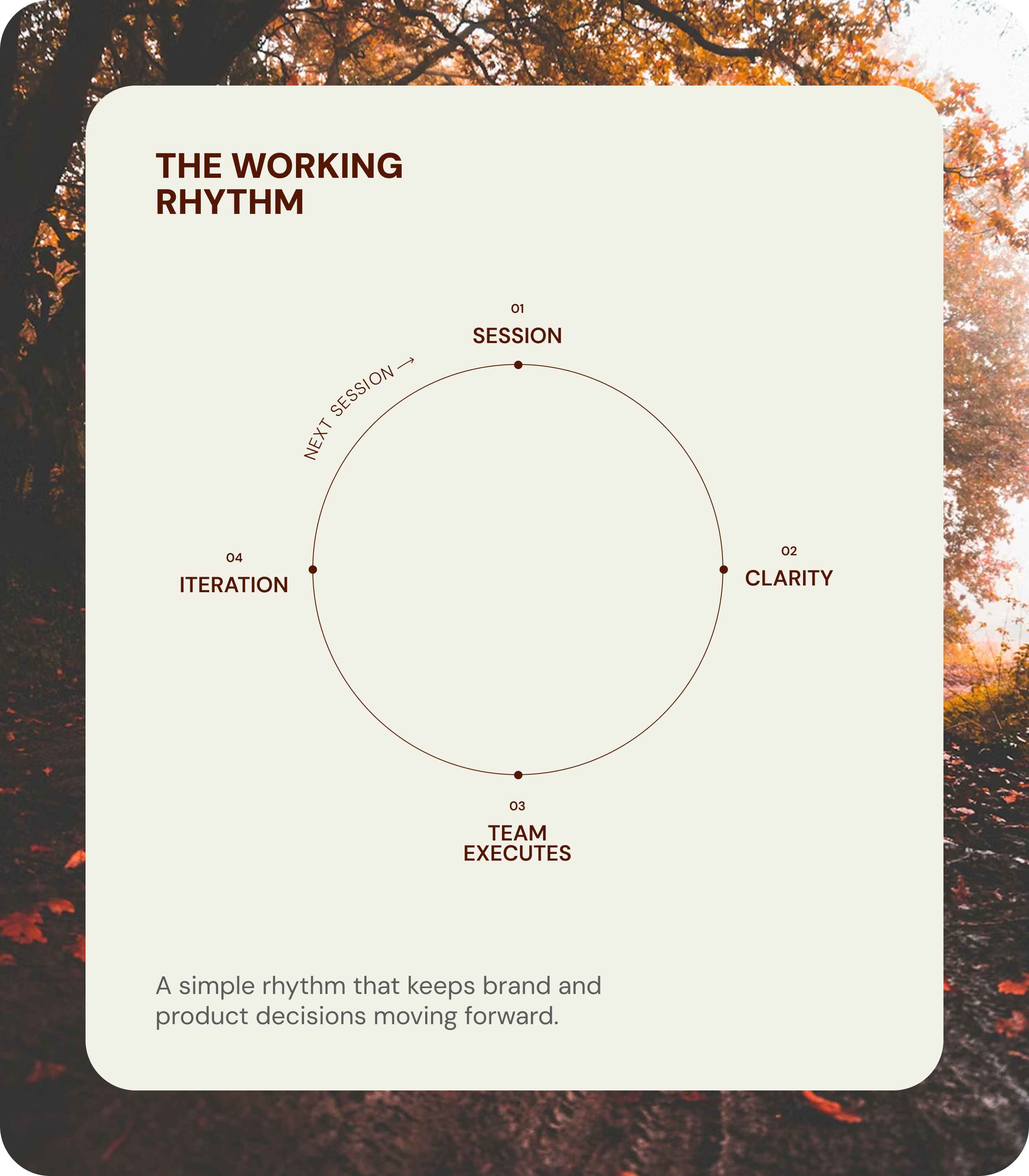 Creative direction sessionsA weekly 1:1 working session where we clarify brand decisions and guide design execution.